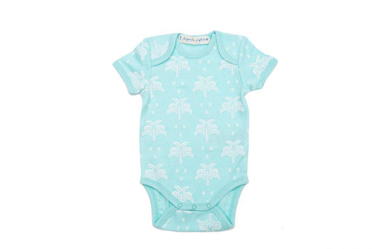 Organic Cotton Baby Onesie Sleepsuit in Aquatic Blue Palms and Pineapples