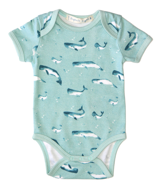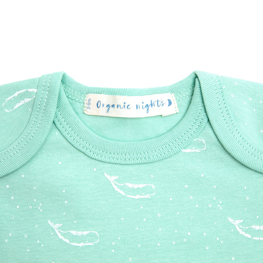 Organic Cotton Baby Onesie Sleepsuit in Sage Green Tiny Whales