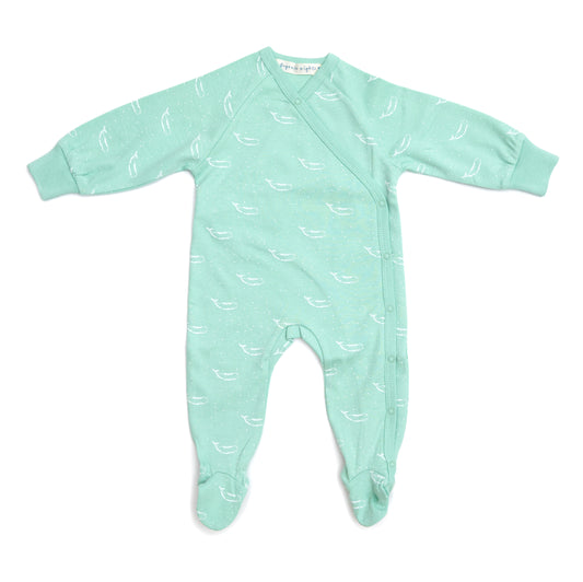 Organic Cotton Crossover Baby Onesie Sleepsuit with Feet in Sage Green Tiny Whales