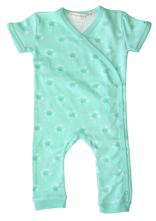 Organic Cotton Summer Crossover Sleepsuit With Legs - Dandelions in Mint
