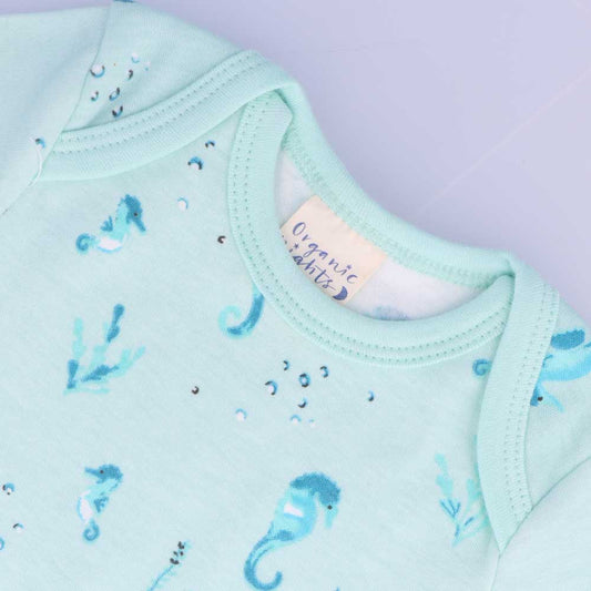 Organic Cotton Summer Baby Onesie - Seahorses Teal