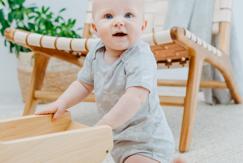 Organic Cotton Summer Onesie - Palms and Pineapples in Grey