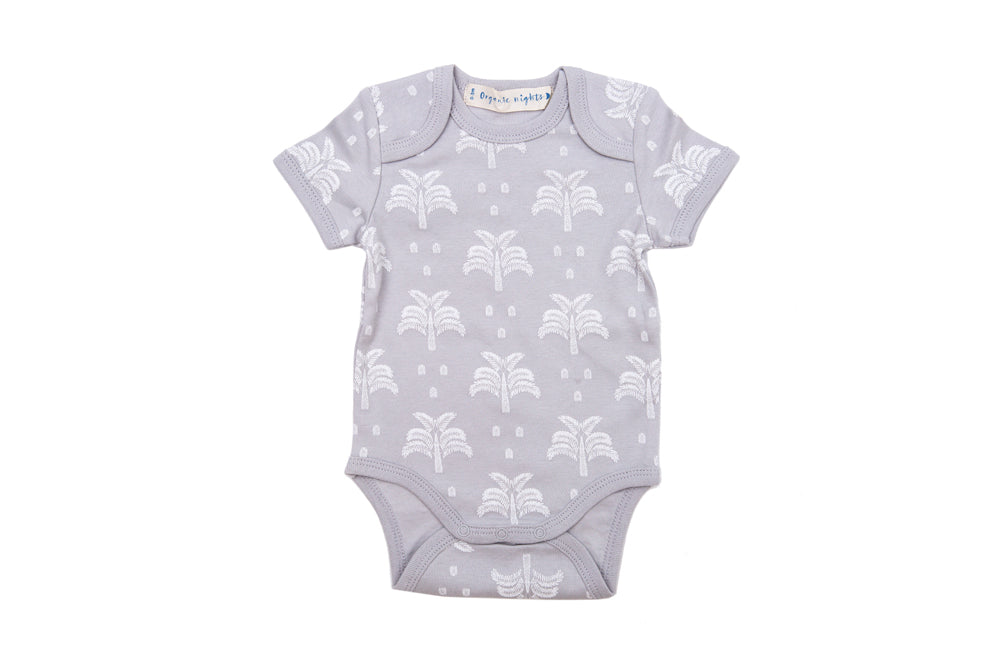 Our Organic Nights baby sleepsuit is made from 100% GOTS-Certified Organic Cotton, making it as soft, pure, healthy and comfy as sleepwear can be. Designed in a soothing grey for lovers of neutral tones, this Palms & Pineapples Print is perfect for both boys and girls. The envelope neck line is soft and stretchy, making it easy to slip over your little one's head. And the dome buttons are comfortable to wear and an easy-snap style for those frequent nappy changes.