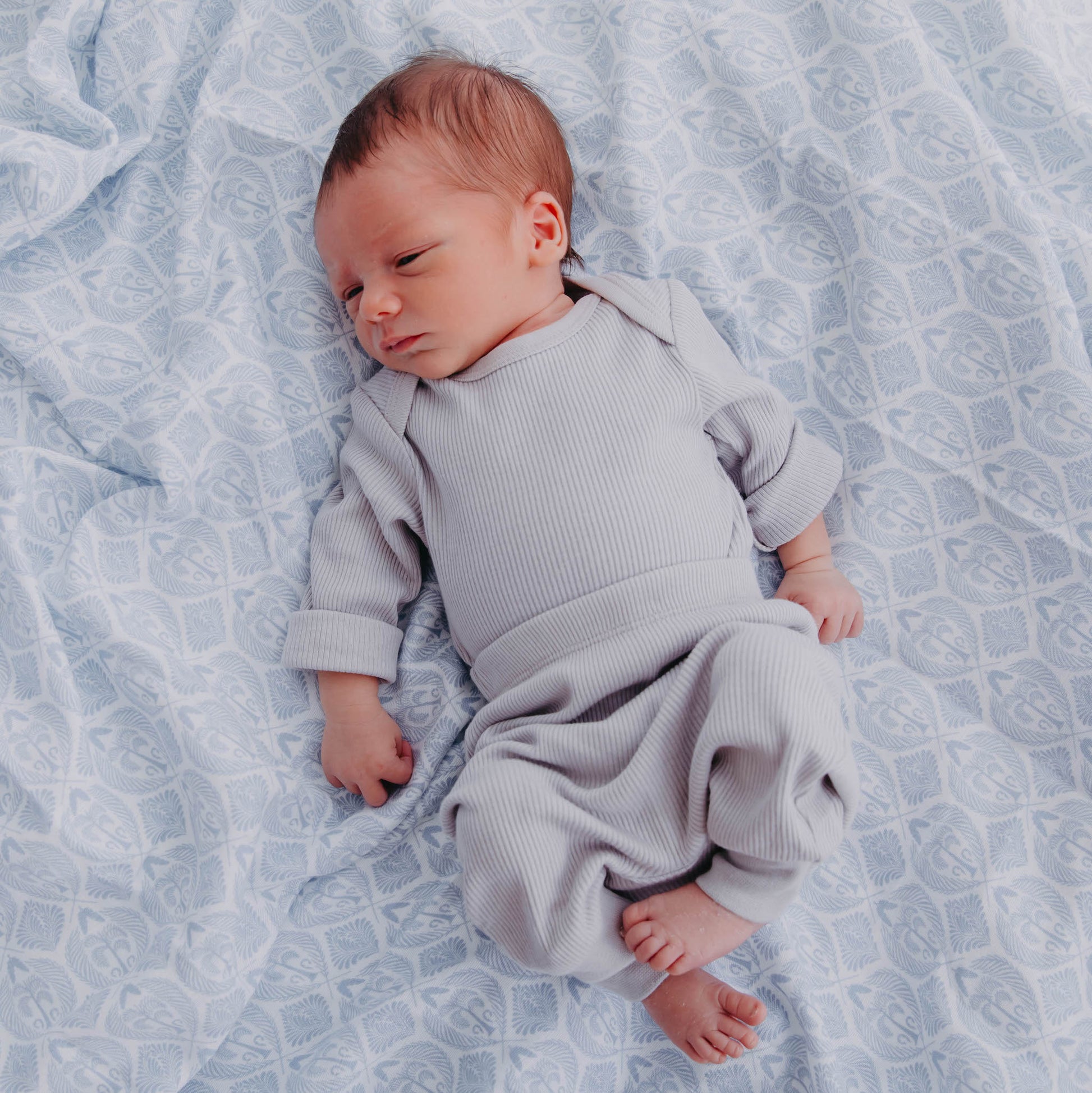 100% Certified Organic Cotton Rib-Knit Autumn Baby Sleep Pants in Grey