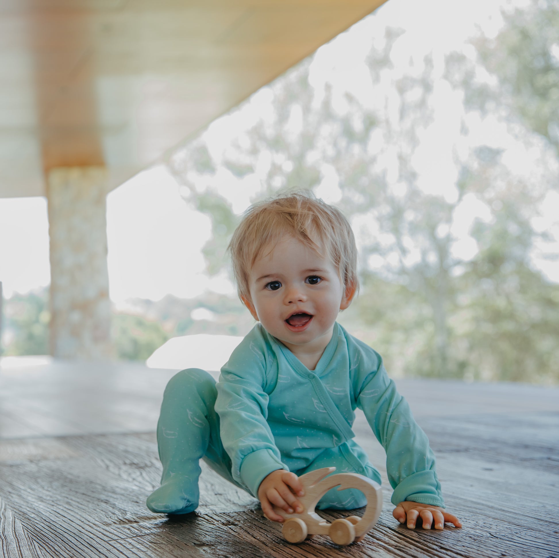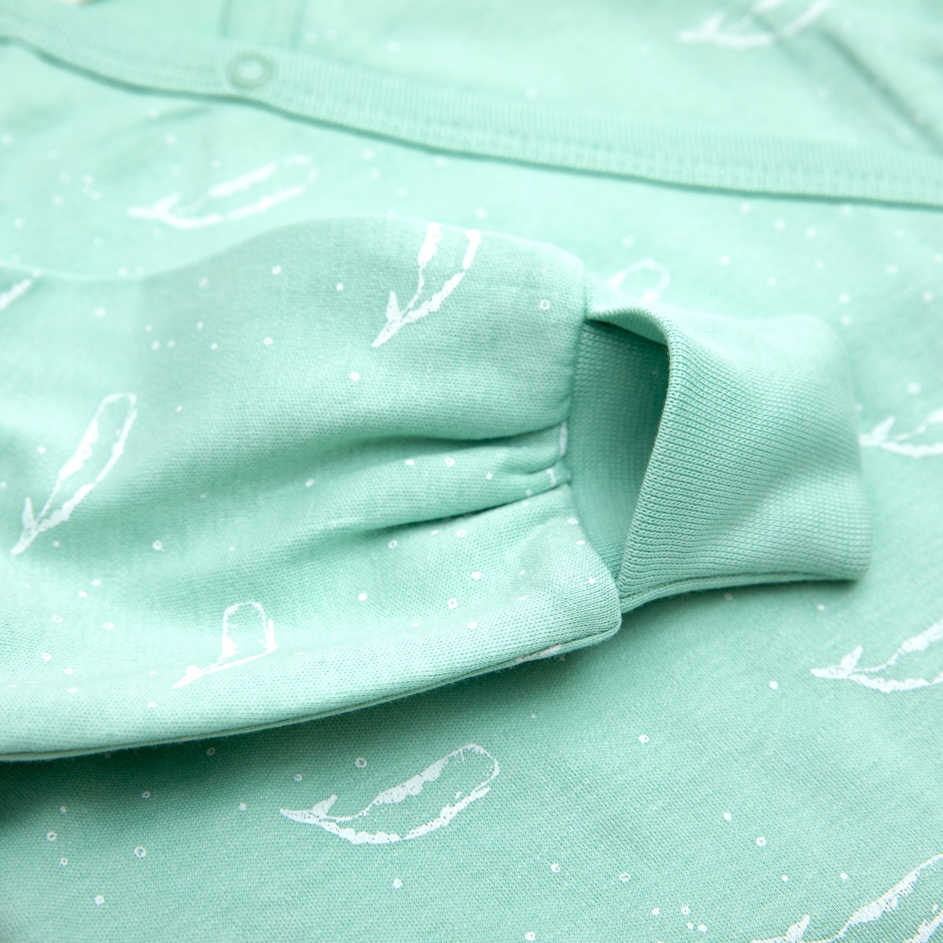 Organic Cotton Crossover Baby Onesie Sleepsuit with Feet in Sage Green Tiny Whales